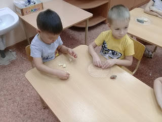 Задача: Выявить свойства глины (Влажная, мягкая, вязкая, можно изменить её форму, делить на части, лепить) и камня (сухой, твёрдый. из него нельзя лепить, его нельзя разделить на части)